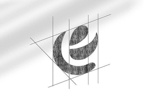La lettre « e », extraite d’Efflorescence, s’inscrit dans un cercle ouvert — symbole d’énergie, d’élan et d’équilibre.